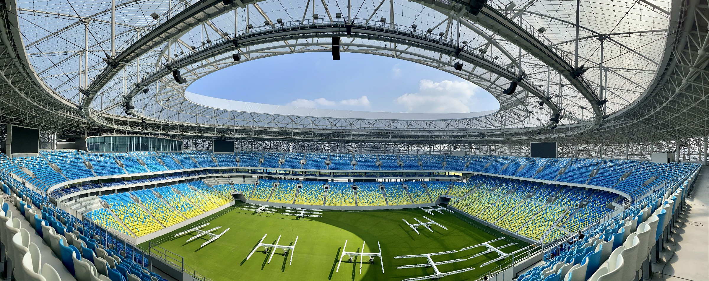 大丰体育还为各类体育场馆提供大丰定制产品,例:国家体育游泳中心-水立方定制座椅、上海浦东足球座椅等