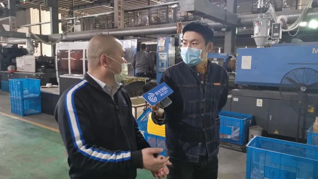 (图为大丰体育塑料车间主任方铁军接受采访)