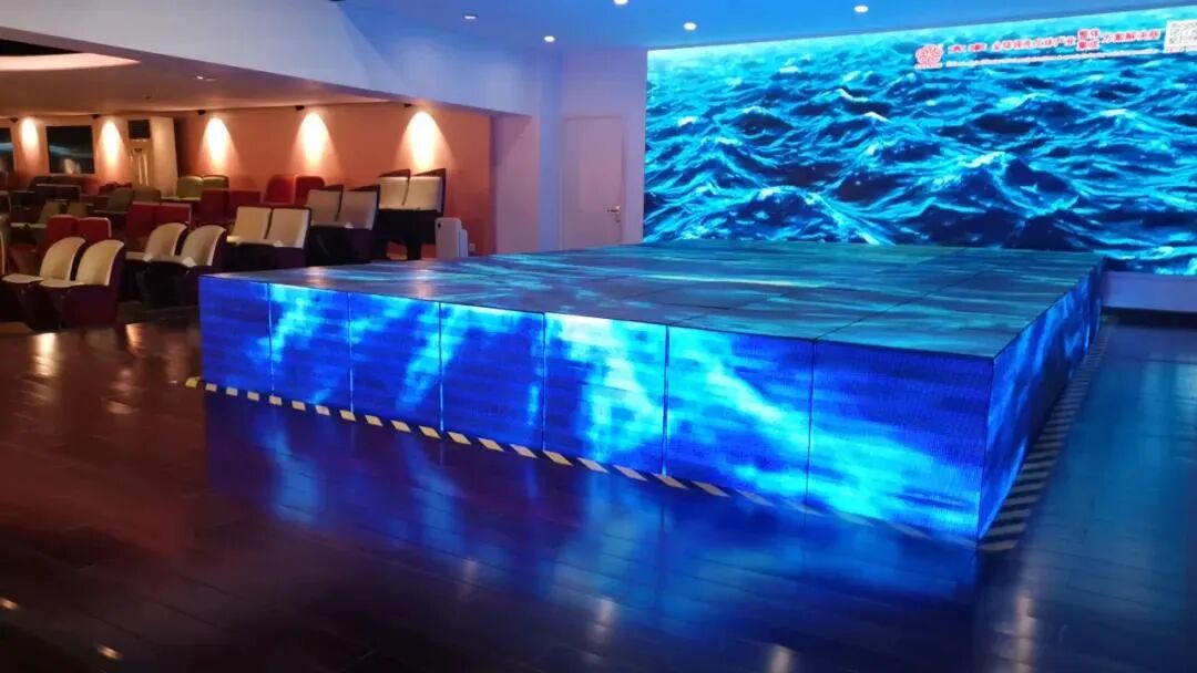 在大丰体育位于宁波余姚的展示厅中,集纳了一个缩小版的多功能集成剧院。粗壮的机械臂托举着20多平方米的大屏幕挥舞自如,一侧的智能舞台上,几十个长方体模块在音乐中翩翩起舞。