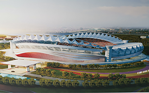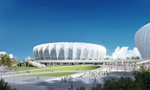 武汉体育中心位于武汉经济技术开发区(沌口)内,由体育场、体育馆和游泳馆(一场两馆)及其它附属建筑构成,总规划用地1580亩。包含60000人体育场已于2002年9月竣工。